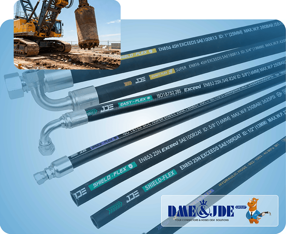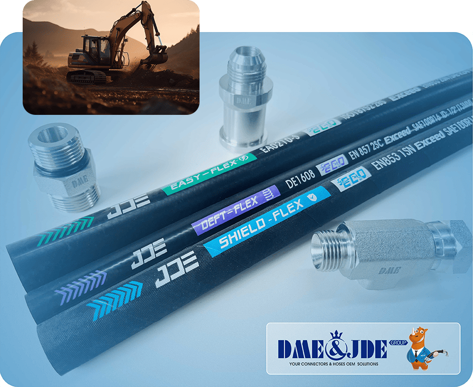JDE & DME Group firmly believes customers demand simpler, more refined products. Born from this philosophy, Easy-Flex non-skive hoses feature simple, precise crimping—delivering high-quality hydraulic performance to support the efficient operation of construction machinery.