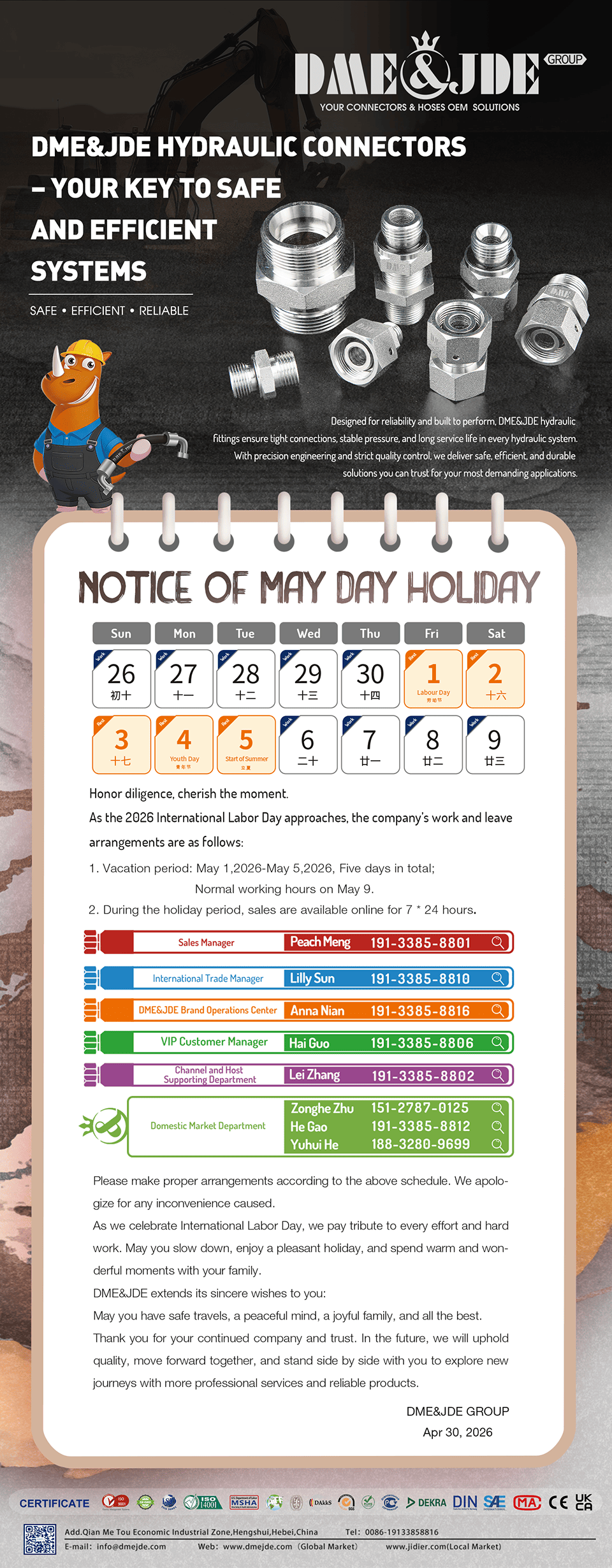With professional strength in the hydraulic industry, we provide reliable products and quality services to our global partners.