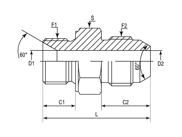 | - | Part Number | F1 (Thread) | F2 (Thread) | C1 | C2 | D1 | D2 | L | S | Cross Number |